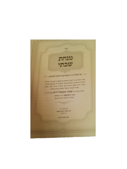 מנחת שבתי -על התורה ומועדים
