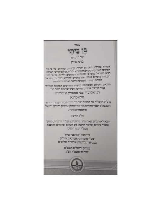בן ביתי על התורה -המבואר -קאמרנא -ב''כ