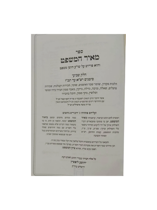 מאיר המשפט על שו''ע חושן משפט -סימנים רצ''א -תכ''ז