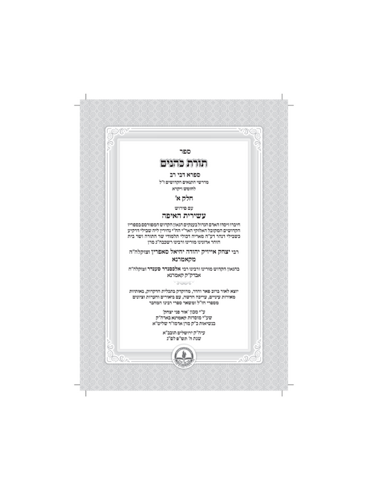 תורת כהנים -ע''פ עשירית האיפה -קאמרנא -ב''כ