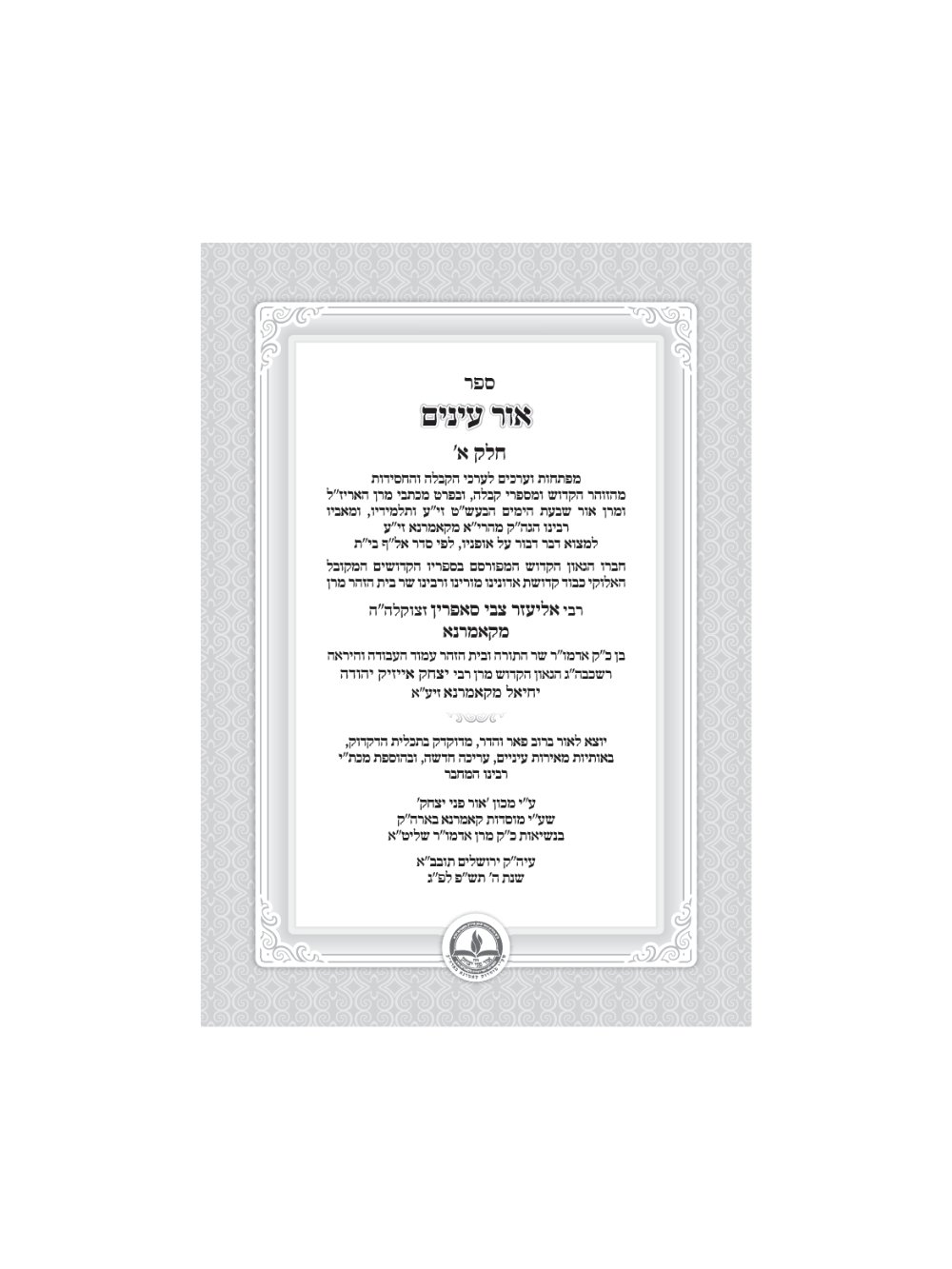 אור עינים -ערכי הקבלה -קאמרנא -ב''כ -חדש